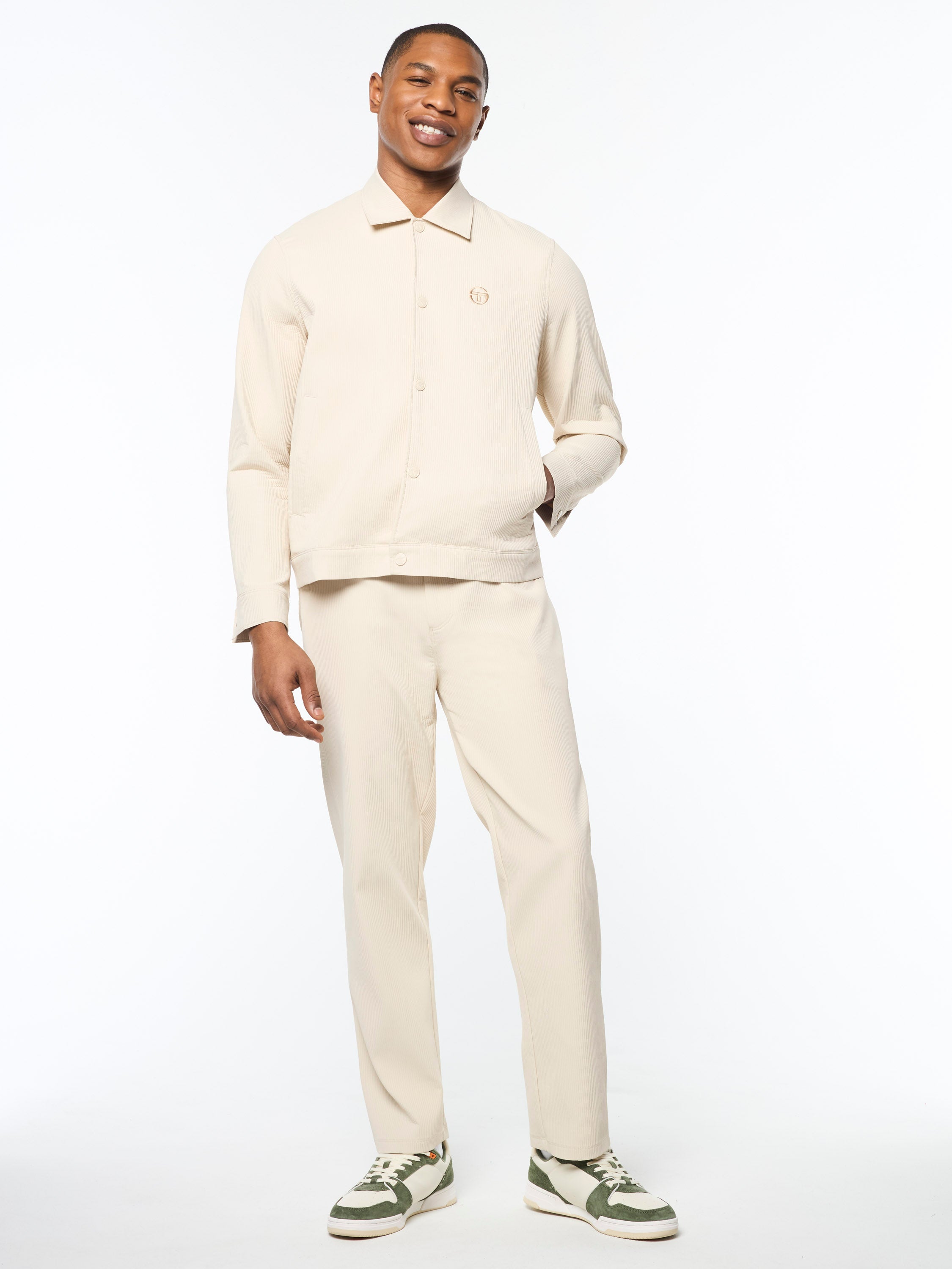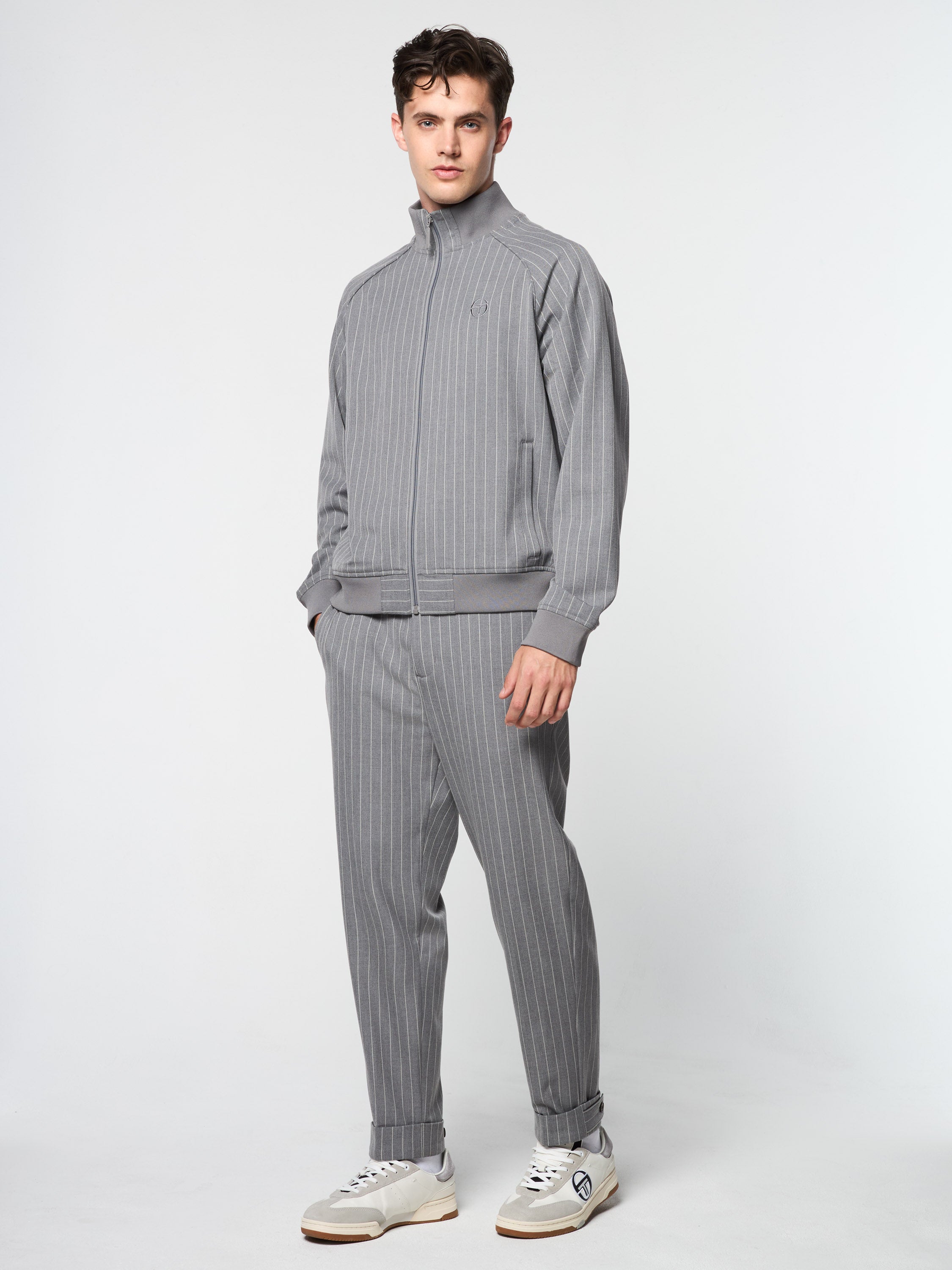 A long-time Tacchini classic, the Damarindo Track Jacket is made of wrinkle-resistant twill and features our distinctive double-stripe at the chest, sleeves, and stand-up collar....