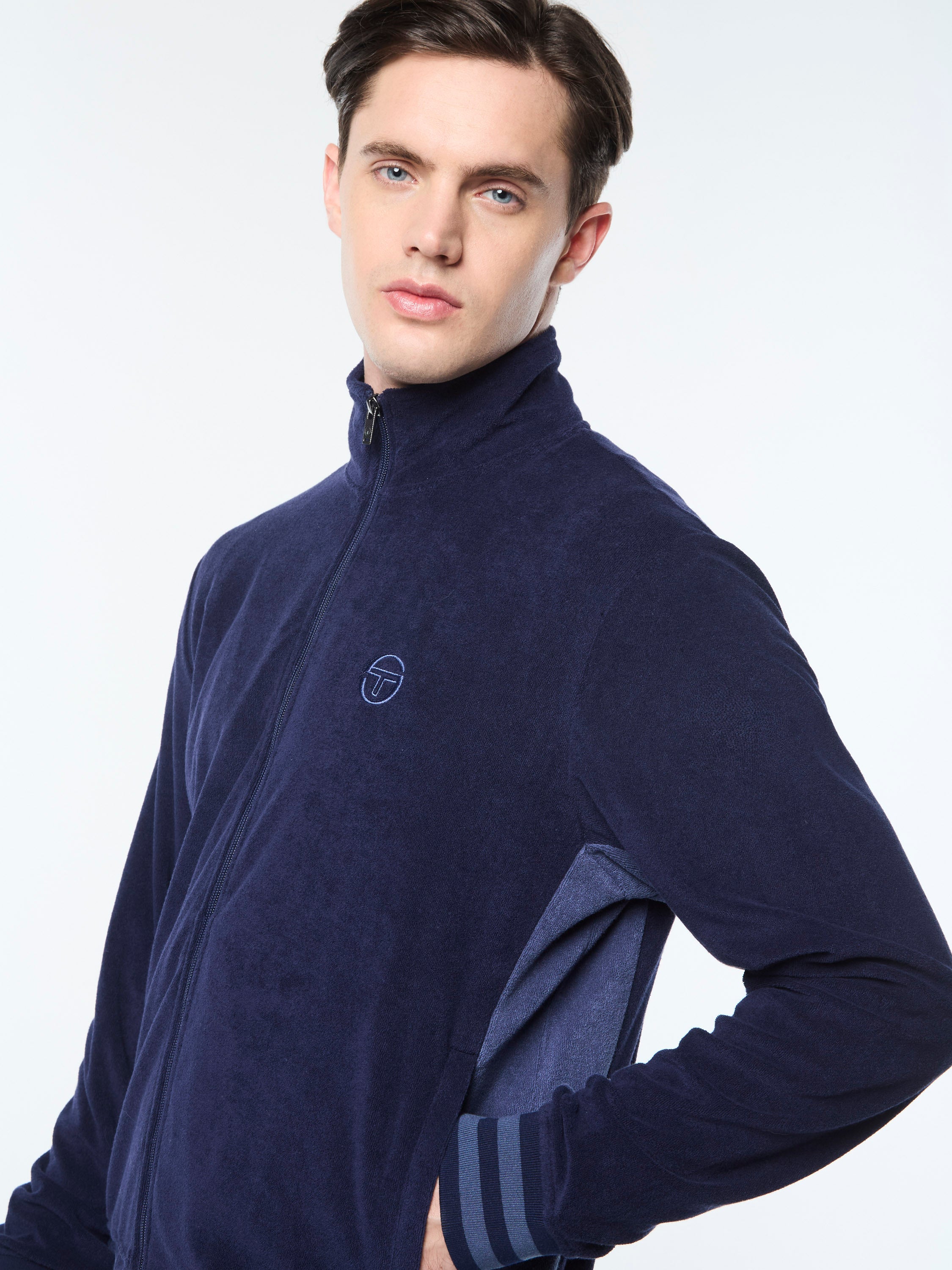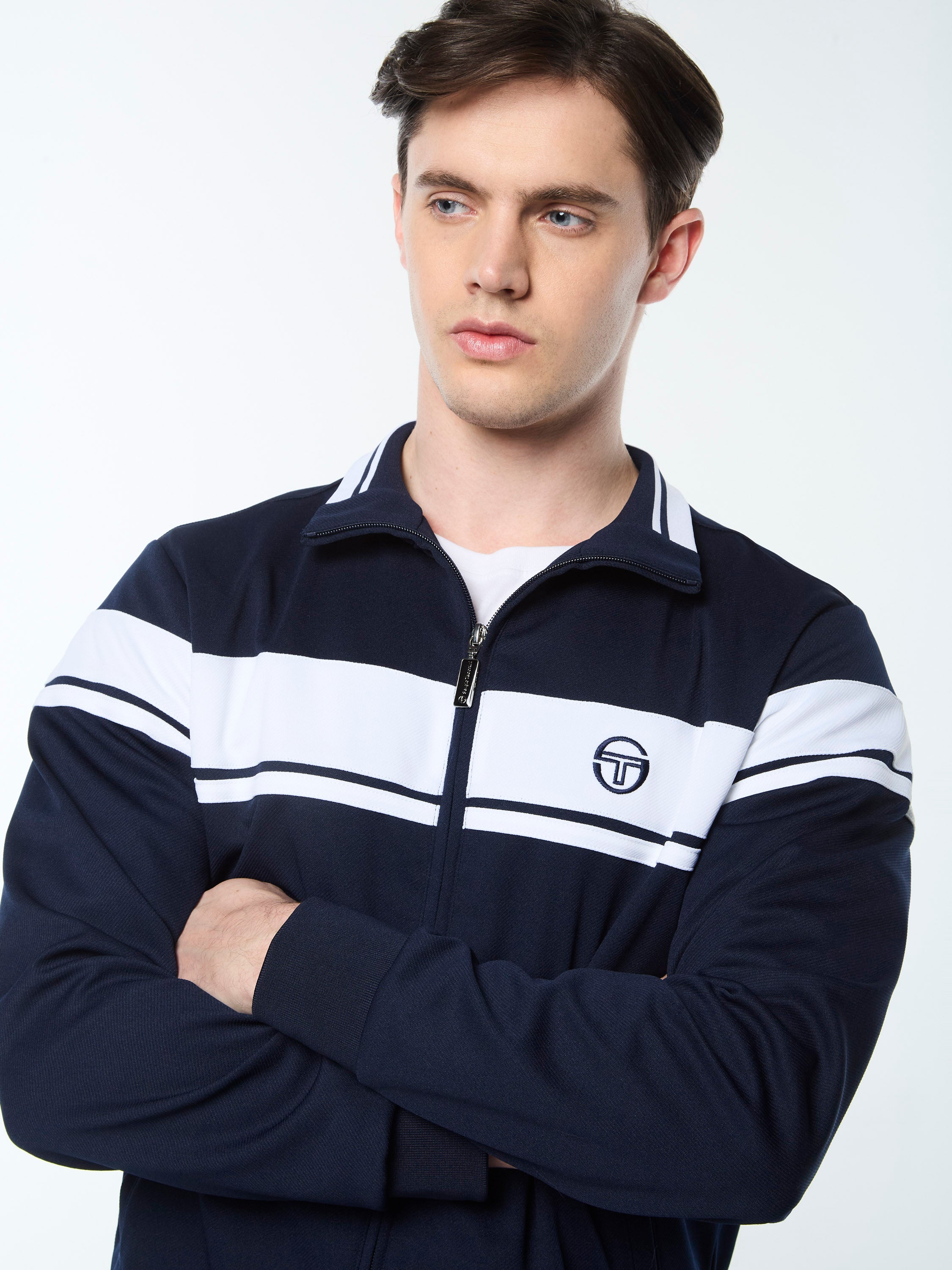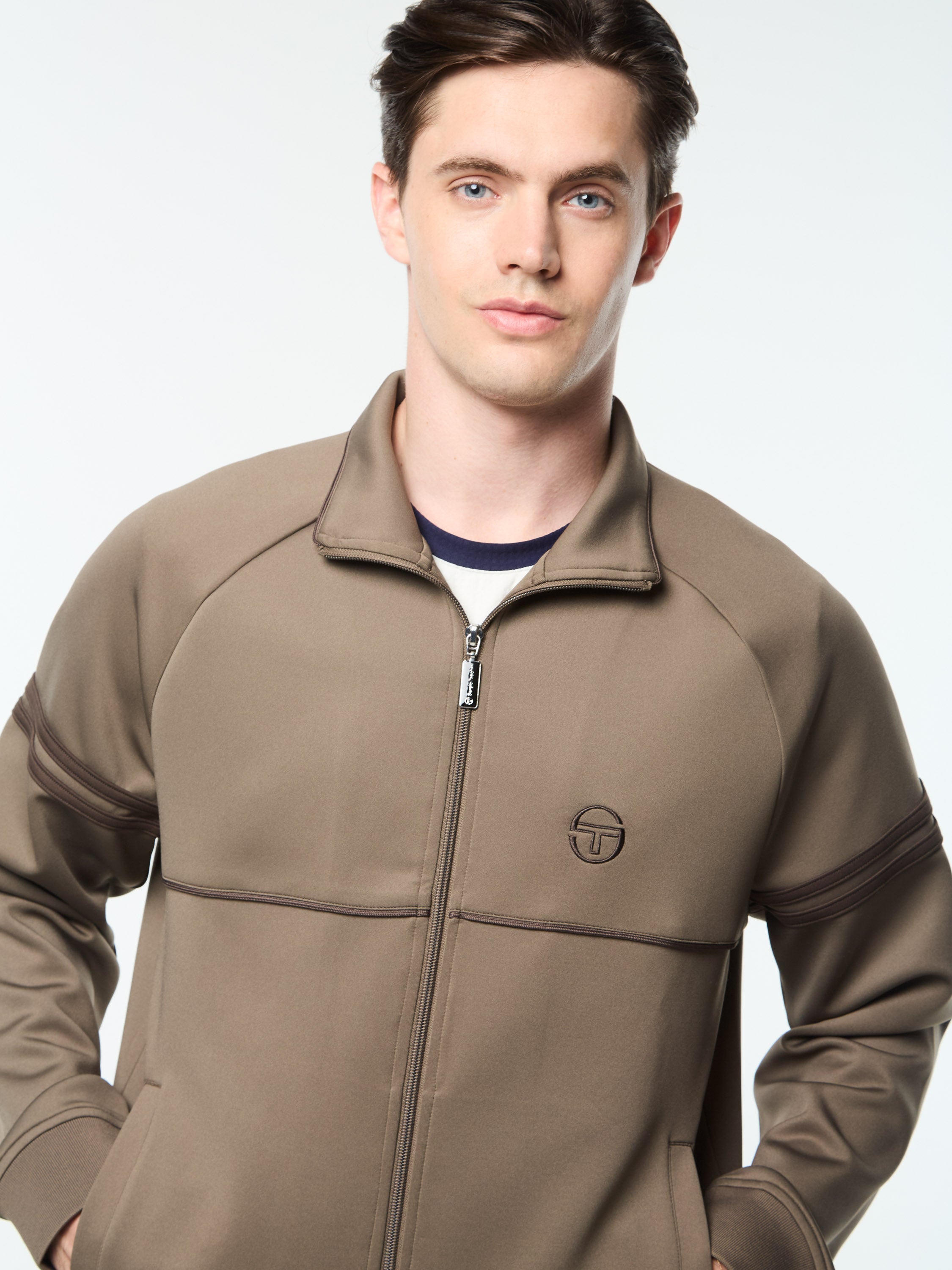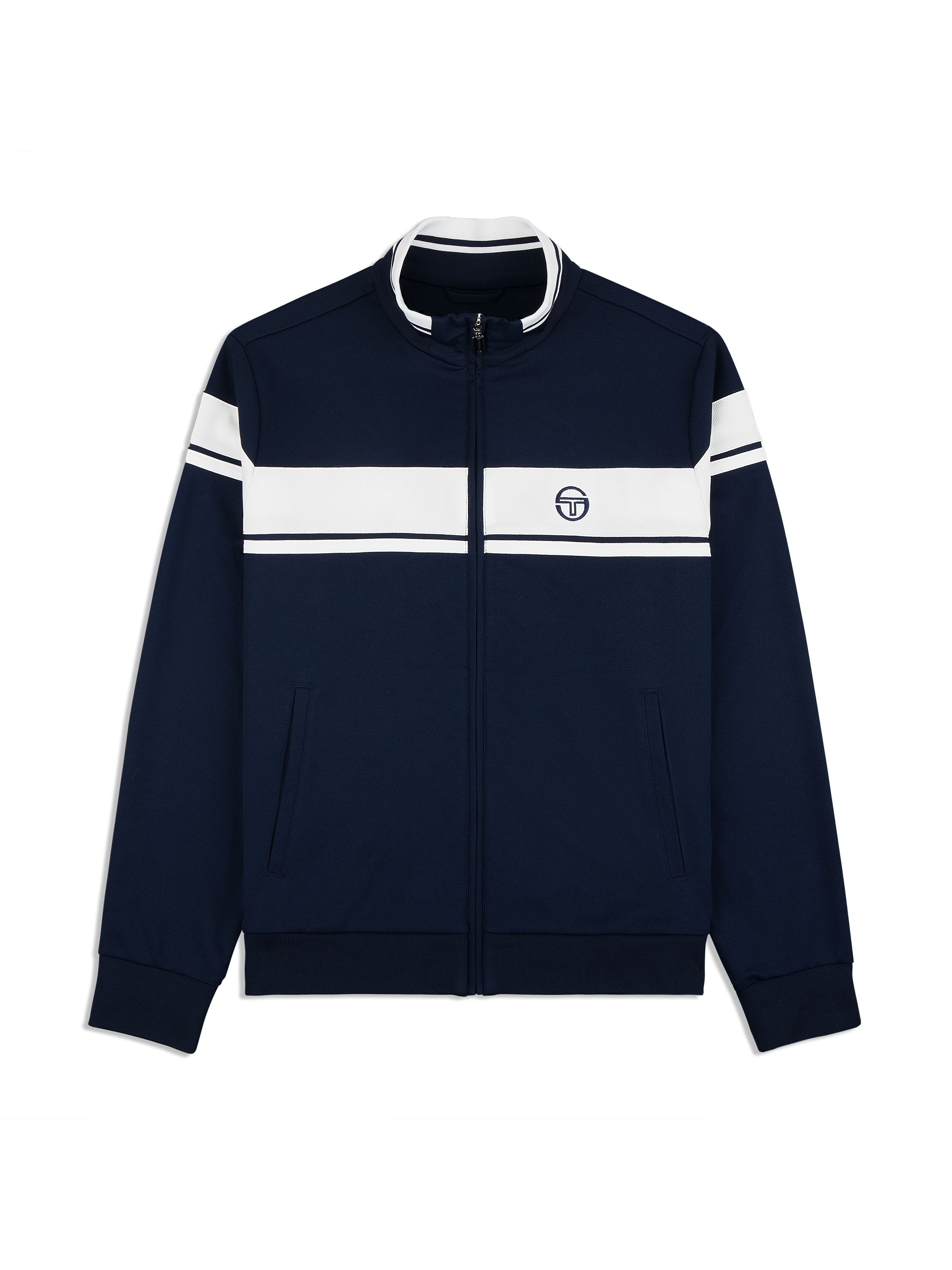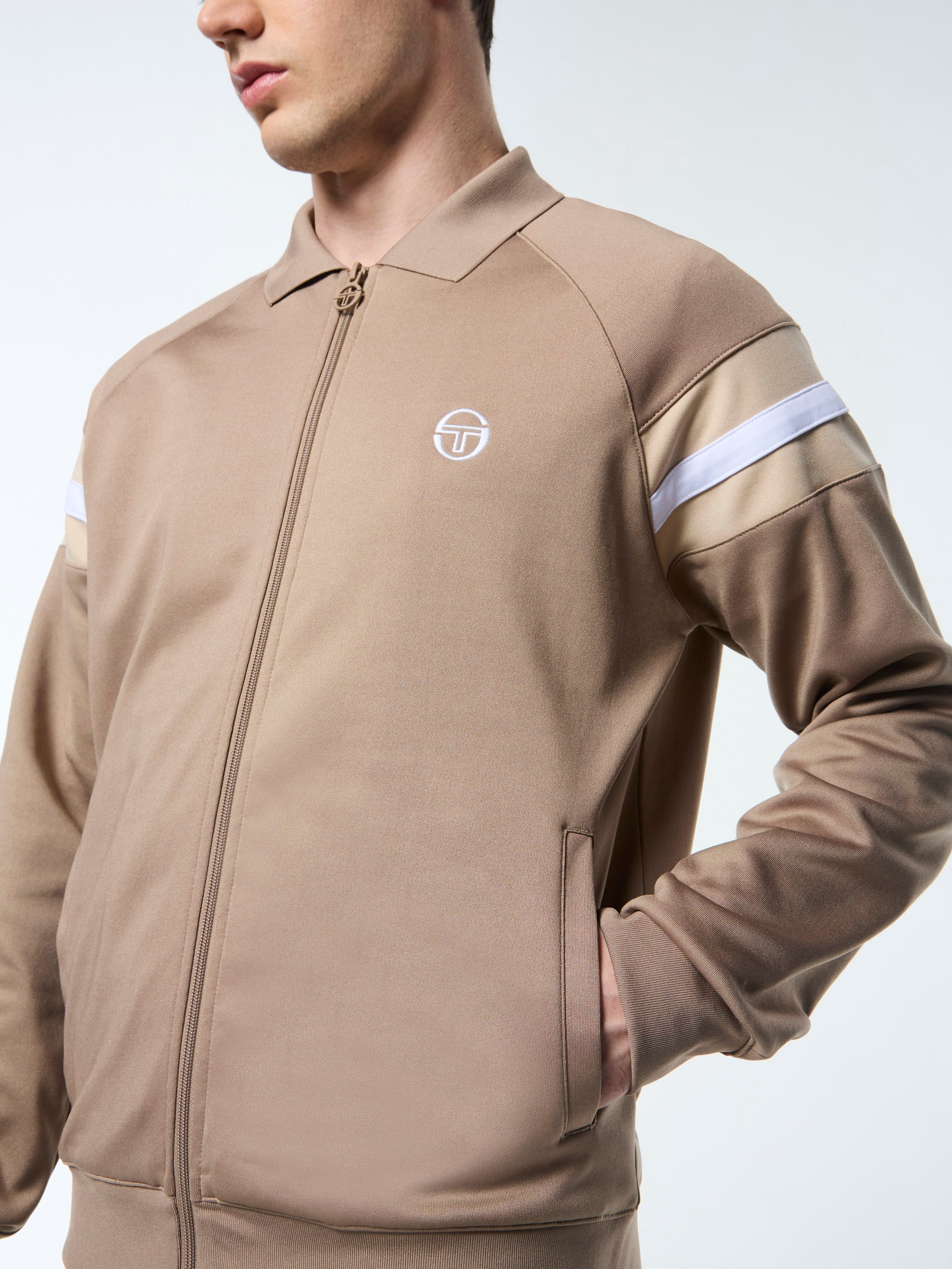 A long-time Tacchini classic, the Damarindo Track Jacket is made of wrinkle-resistant twill and features our distinctive double-stripe at the chest, sleeves, and stand-up collar....