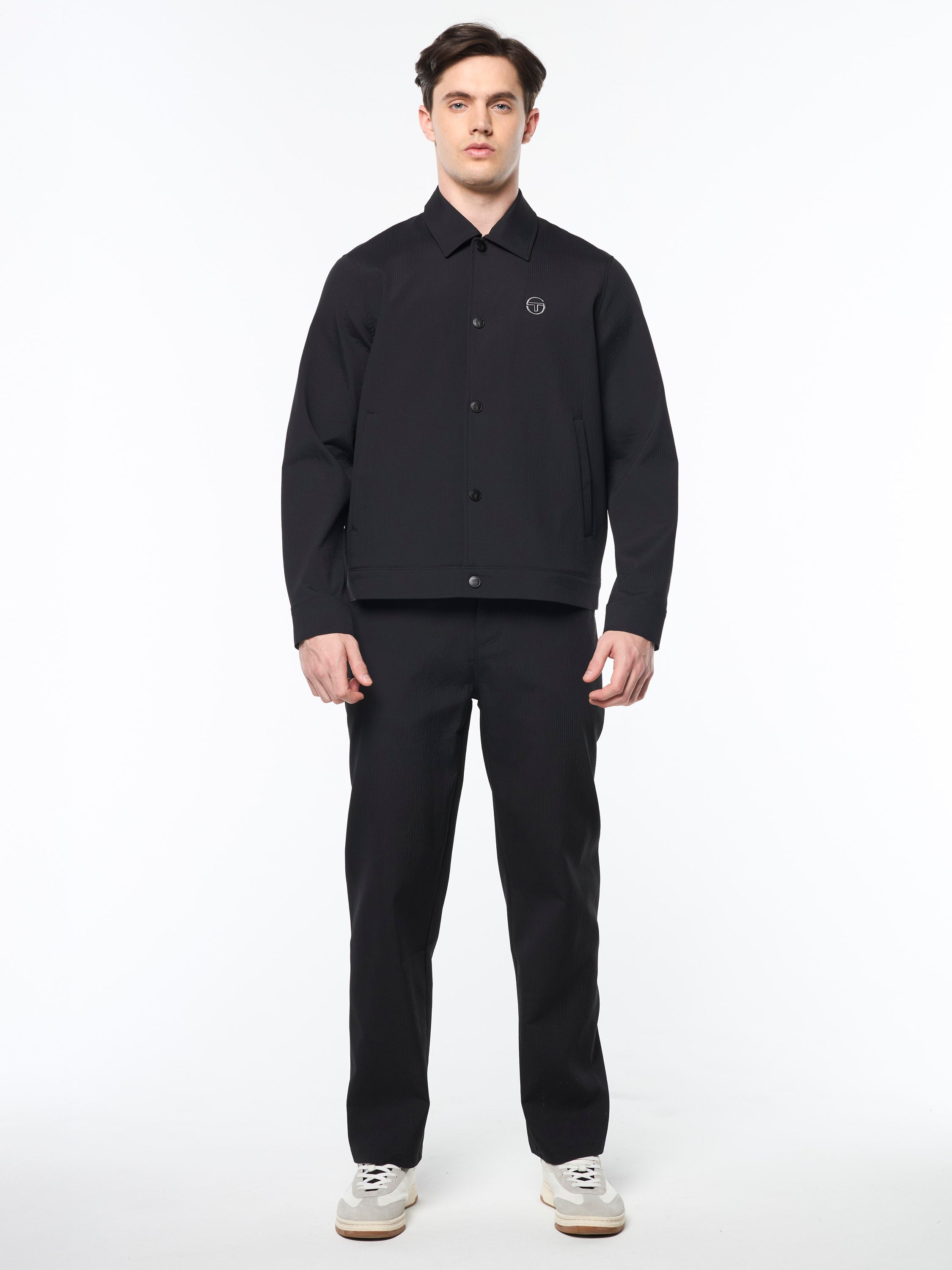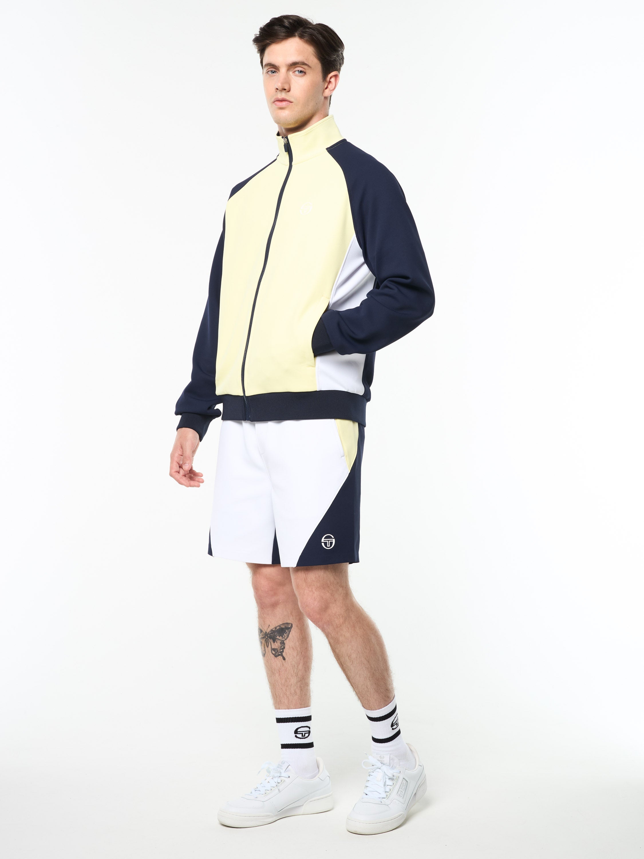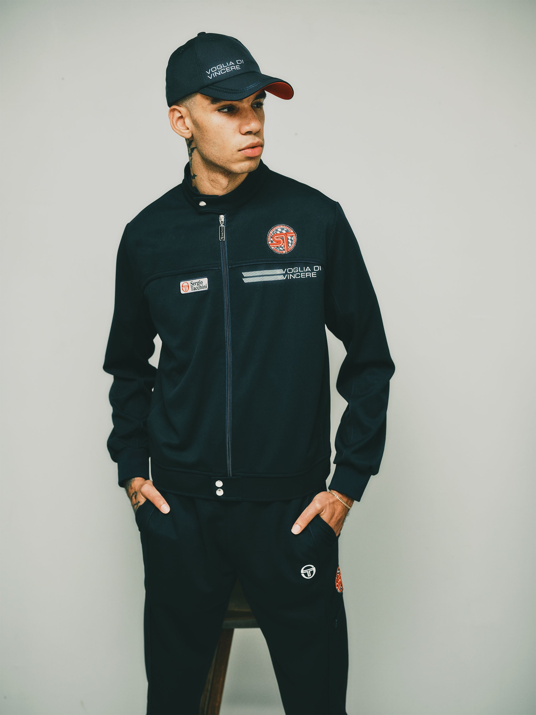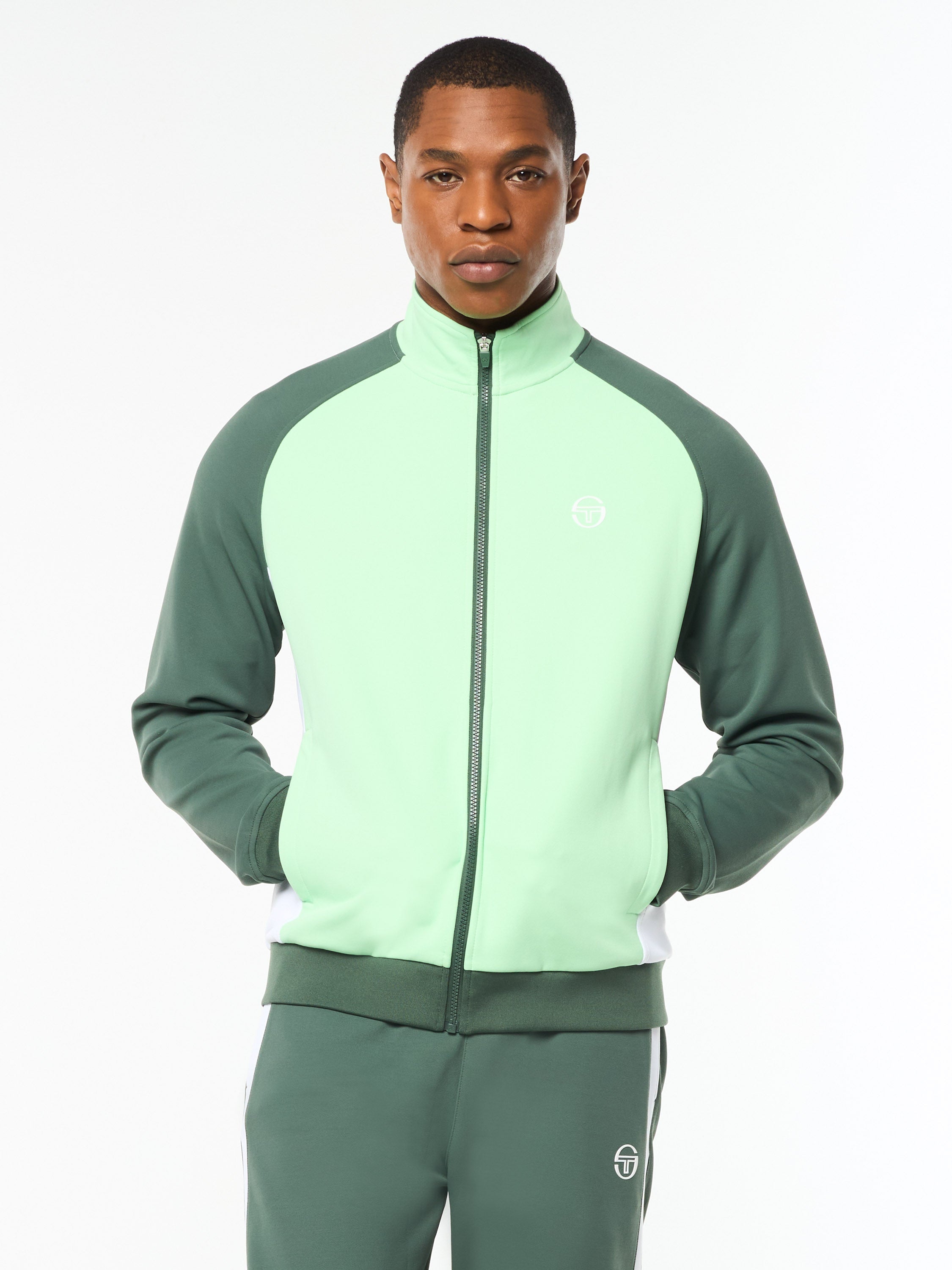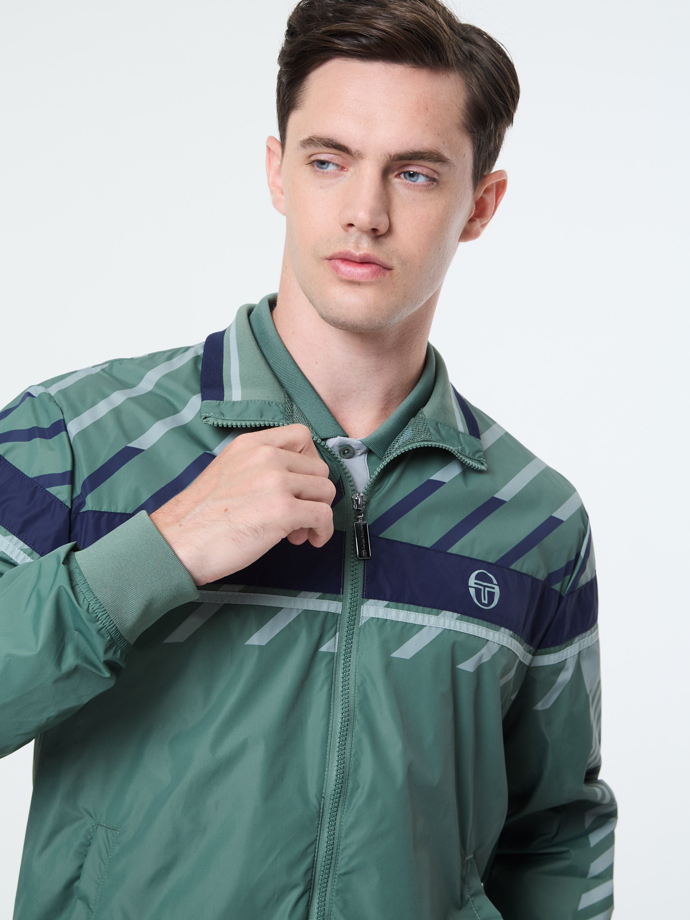A long-time Tacchini classic, the Damarindo Track Jacket is made of wrinkle-resistant twill and features our distinctive double-stripe at the chest, sleeves, and stand-up collar....
